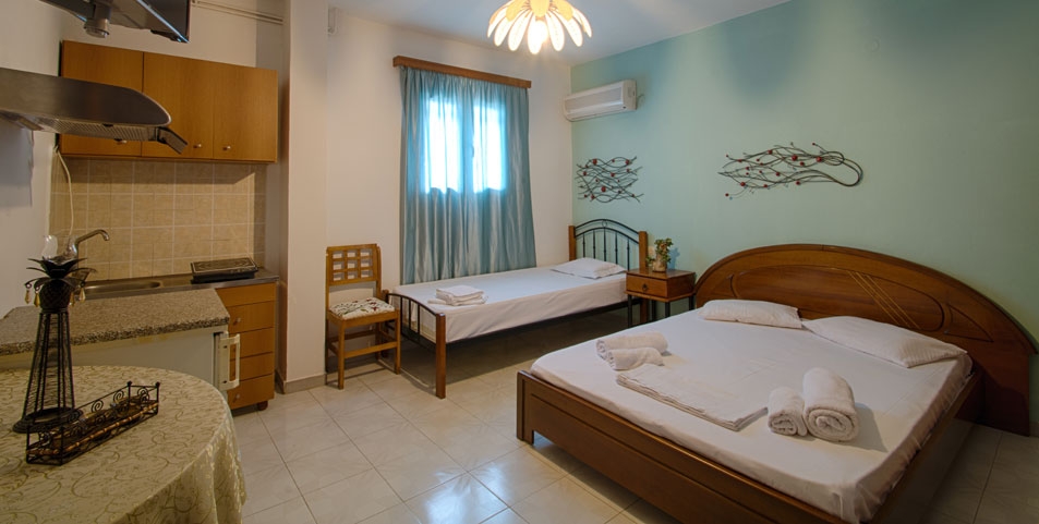 Marianna Apartments is located in a quiet neighborhood of Triovasalos village in Milos Greece. The facility used to be a really big house, but then it was transformed by the family as a lodging business. The compound offers apartments with A/C, Fridge, Kitchenette, some basic kitchen equipment, Free Wi-Fi and access to the lovely terrace that overlooks the center of Triovasalos village. The family is what we all call GOOD people. Anna Psatha is the grandmother that has a big smile for everyone and will make you the best Greek coffee you ever had upon request. Maria Psatha, Anna's daughter, is helping with the reservations and the studios' preparations and finally Giannis Kiritsis is a third generation's owner, eager to help, always providing to the visitors of the facility a pleasant stay. Location on map: